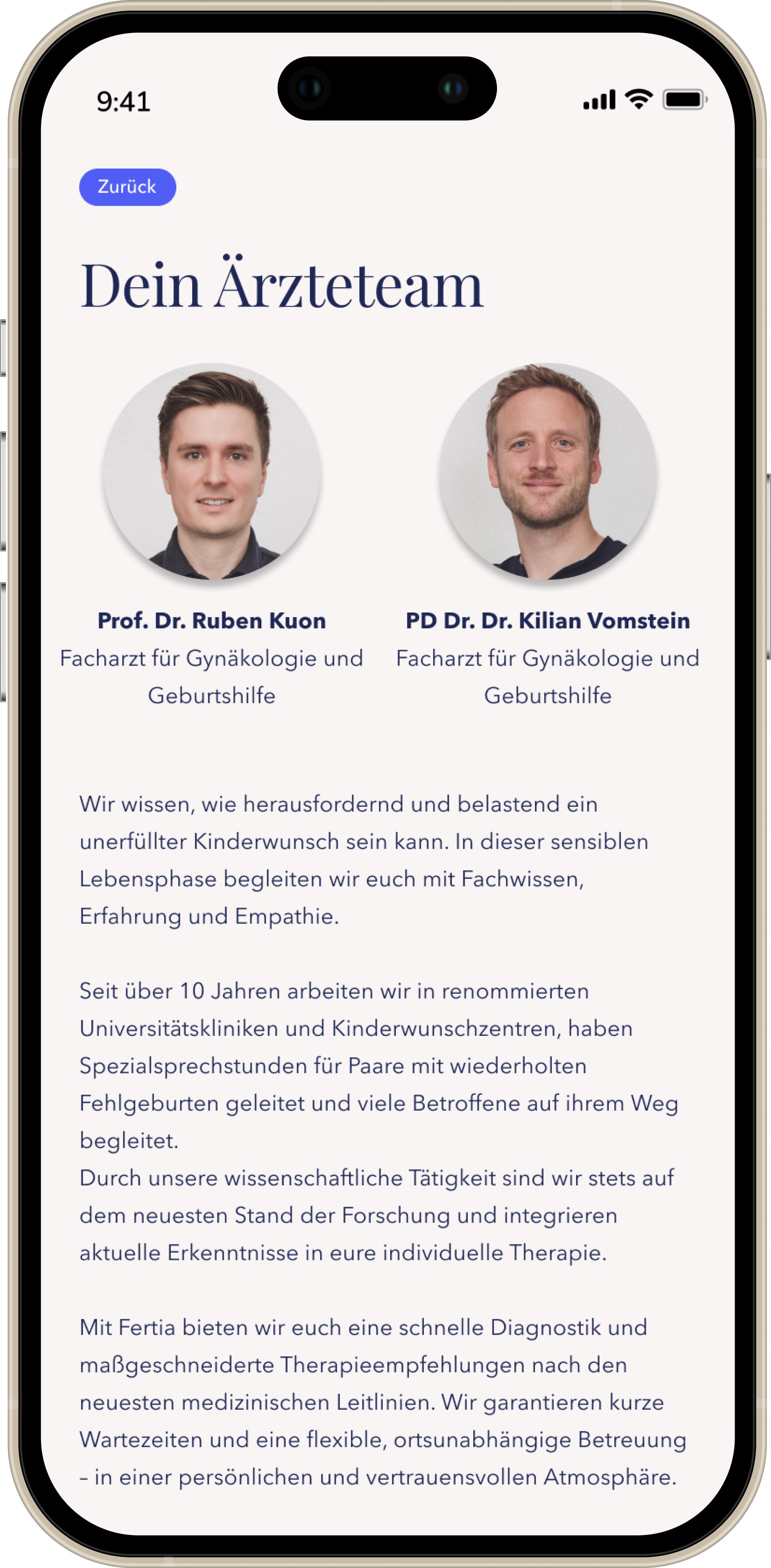 Unsere erfahrene Ärzt:innen begleiten dich – persönlich, einfühlsam und auf dem neuesten Stand der Wissenschaft.